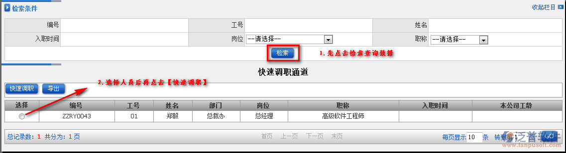 如何在泛普軟件erp系統(tǒng)中快速進(jìn)行人員調(diào)職?