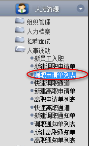 1.點擊辦公模式→行政管理→人事調動→調職申請單列表,進入“調職申請單列表”窗口: