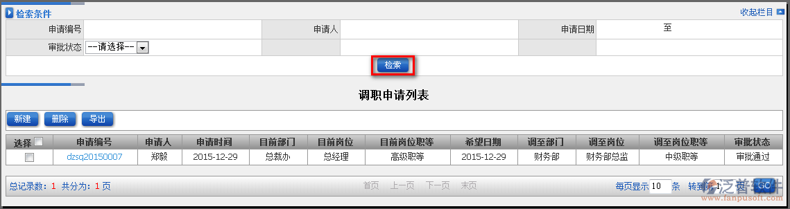 如何在泛普軟件erp軟件中查詢所有調職申請?