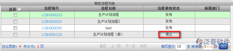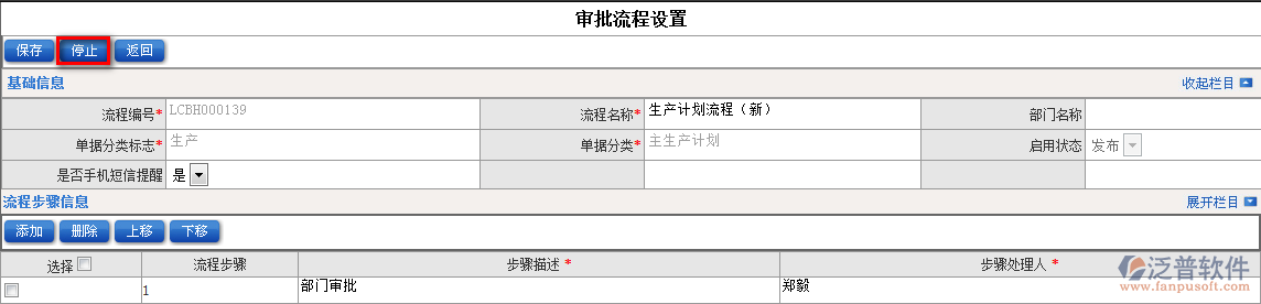 3.如何取消已經(jīng)發(fā)布的流程?進入此界面點擊【停止】即可(流程使用狀態(tài)也顯示為停止)