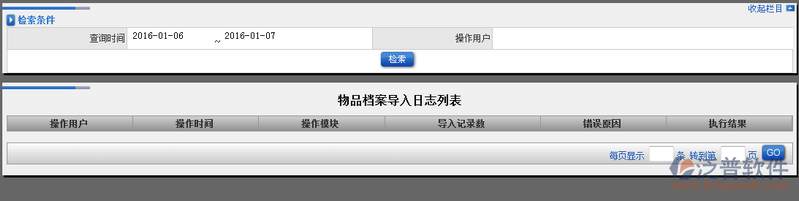 1、點擊【物品檔案導入日志】進入主界面。如圖: