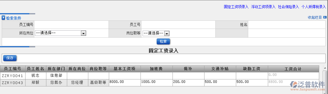 如何在泛普軟件ERP系統(tǒng)中錄入員工工資?