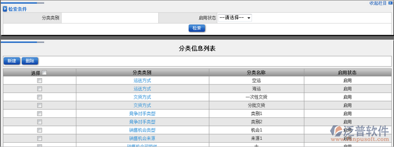 2、在圖1中,通過上半部分的檢索條件我們可以對相關(guān)的分類信息進行模糊查詢。如圖: