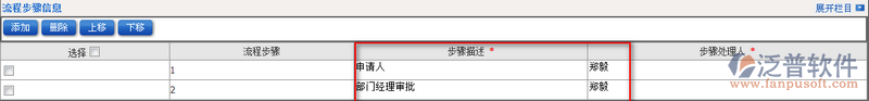 3、填寫完流程中的基本信息,點擊【添加】進(jìn)行流程審批人增加。如圖: