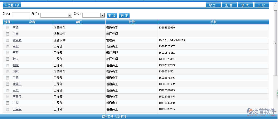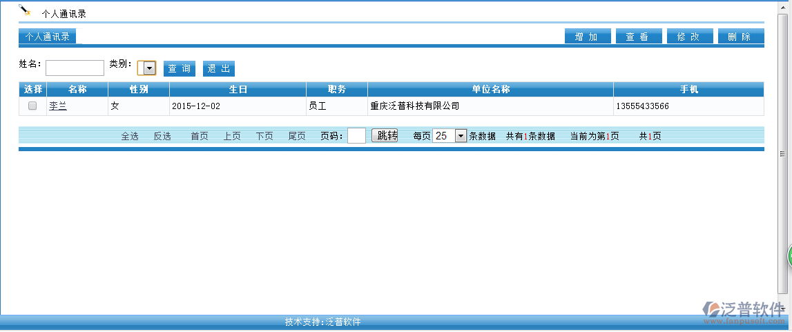 個人通訊簿是記錄個人添加的聯(lián)系人信息和聯(lián)系方式,只能員工自己可以查看,其他任何人員不能查看。