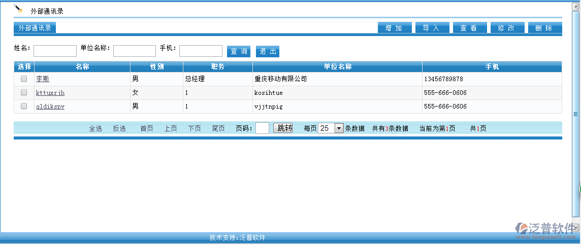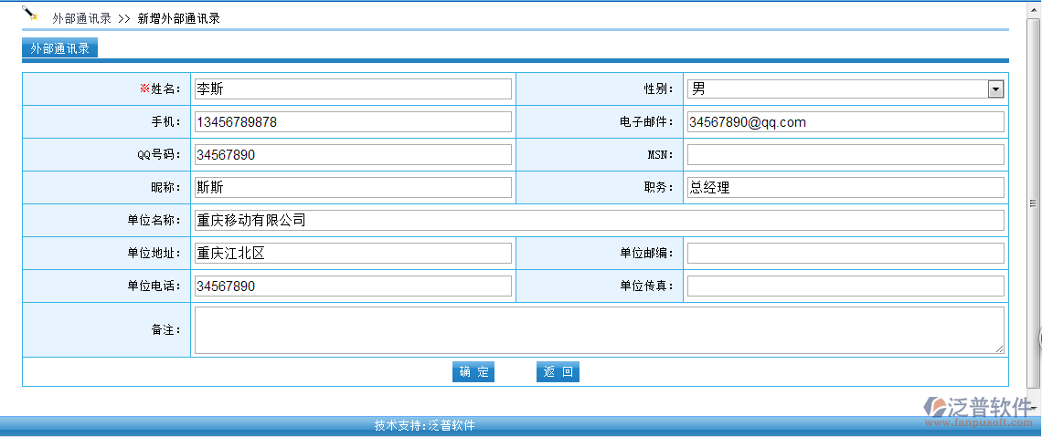 外部通訊錄主要針對客戶或者分公司員工可以使用,可以填寫相關的基本信息