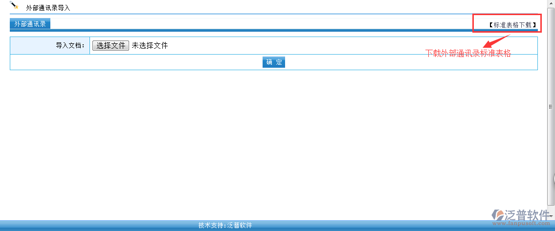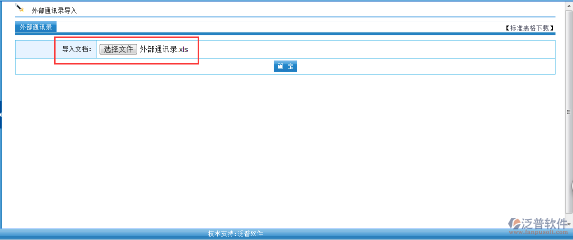 外部通訊錄可以通過Excel表格直接導入到對應的通訊錄中,點擊”導入“進去外部通訊錄導入模式。同時可以下載OA系統(tǒng)自帶的“標準表格”。注意:導入格式需要按照標準的格式