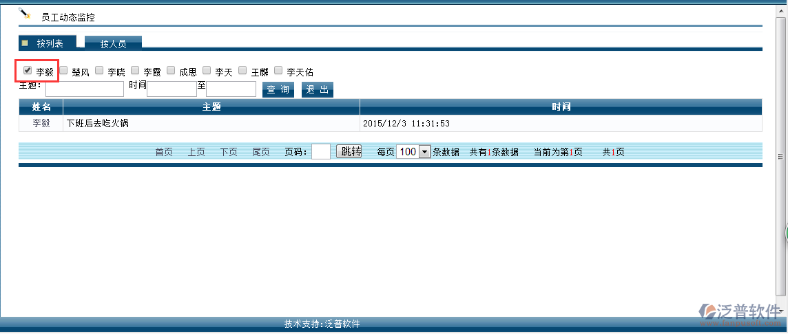 OA動(dòng)態(tài)監(jiān)控專為領(lǐng)導(dǎo)層設(shè)置,只要設(shè)置了領(lǐng)導(dǎo)權(quán)限可以監(jiān)控下屬員工的任何動(dòng)態(tài),即可在動(dòng)態(tài)監(jiān)控頁面查看所有員工的信息。讓領(lǐng)導(dǎo)層更加清楚了解員工需求以及最新動(dòng)態(tài)。系統(tǒng)默認(rèn)查詢所有員工,可以選擇單個(gè)員工進(jìn)行查看