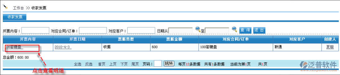 “收款發(fā)票”對應(yīng)的是“合同/訂單—開票記錄”。