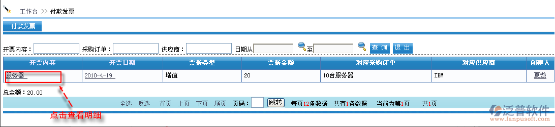 如果想管理付款發(fā)票,首先進入到【銷售系統(tǒng)】—【財務(wù)管理】—【付款發(fā)票】,如圖: