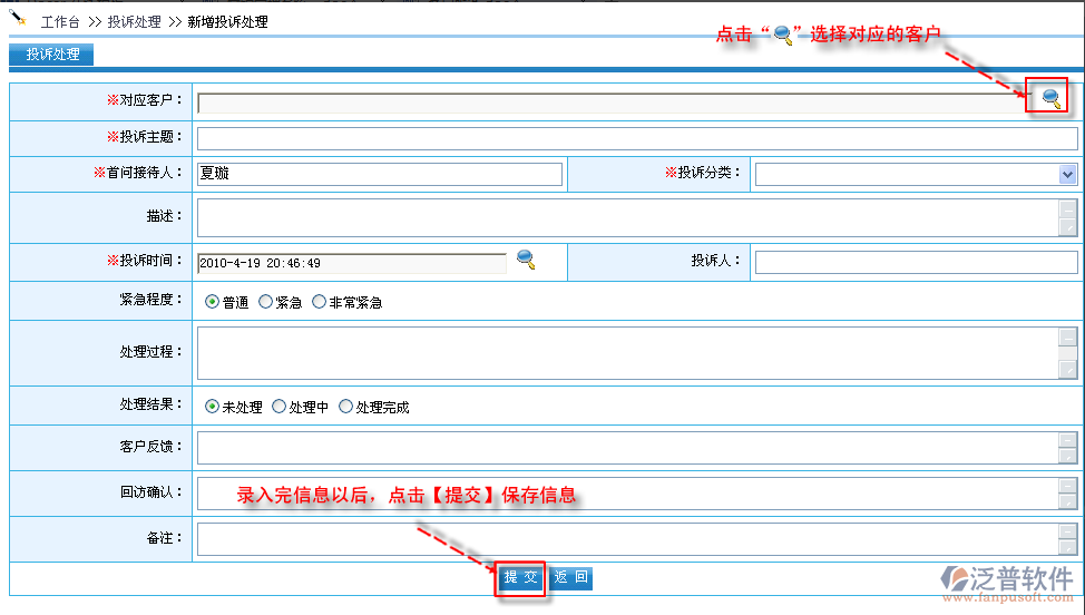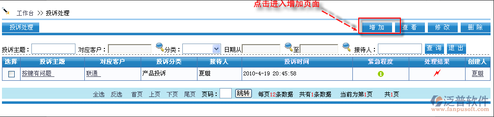首先進(jìn)入到【銷售系統(tǒng)】—【客戶服務(wù)】—【投訴處理】,如圖: