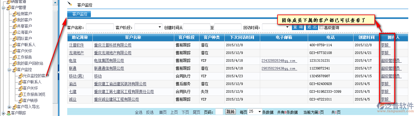 允許監(jiān)控的客戶(hù)(權(quán)限設(shè)置完畢后就可以查看下屬的客戶(hù)了)