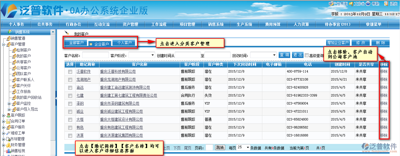 我的客戶管理是指銷售人員名下跟進(jìn)的客戶,只有自己可以新增聯(lián)系記錄、費(fèi)用報(bào)銷等操作。在泛普軟件CRM系統(tǒng)中,客戶有分為企業(yè)客戶和個(gè)人客戶。