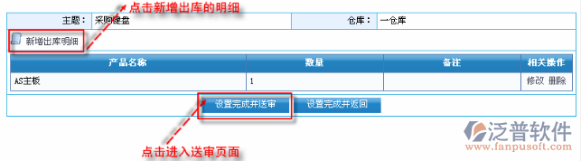 保存信息并進入出庫明細設(shè)置頁面,如圖: