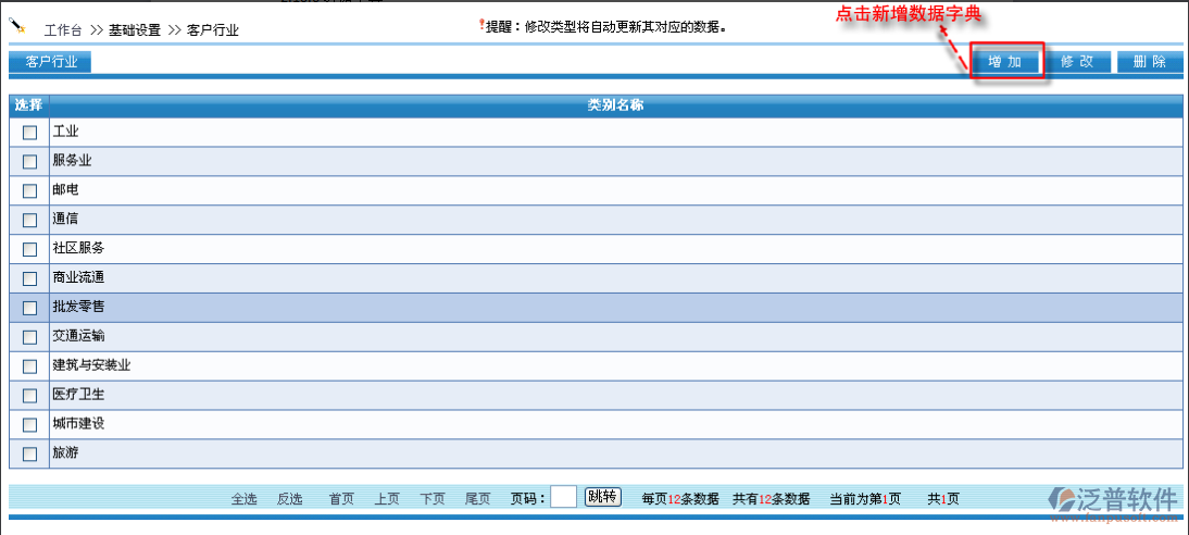 設(shè)置數(shù)據(jù)字典,包括客戶的行業(yè),種類等信息