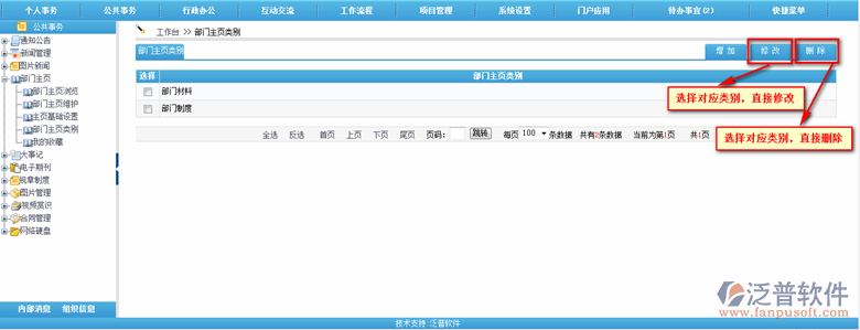 OA辦公系統(tǒng)的部門(mén)主頁(yè)管理主要針對(duì)每個(gè)部門(mén)推出的個(gè)性設(shè)置,此模塊可以使每個(gè)部門(mén)的信息更加清楚。