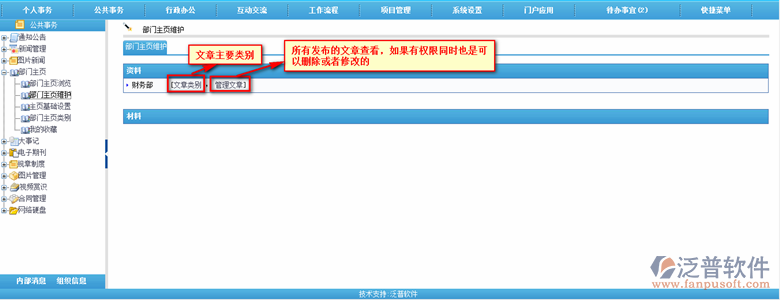 OA部門(mén)維護(hù)主要關(guān)聯(lián)【文章類(lèi)別】和【管理文章】