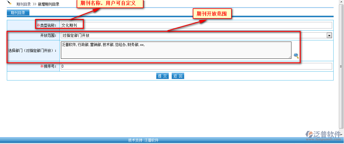 OA系統(tǒng)的期刊目錄是對期刊的一個基本屬性設(shè)置,例如:文化期刊、銷售期刊等。點擊【增加】
