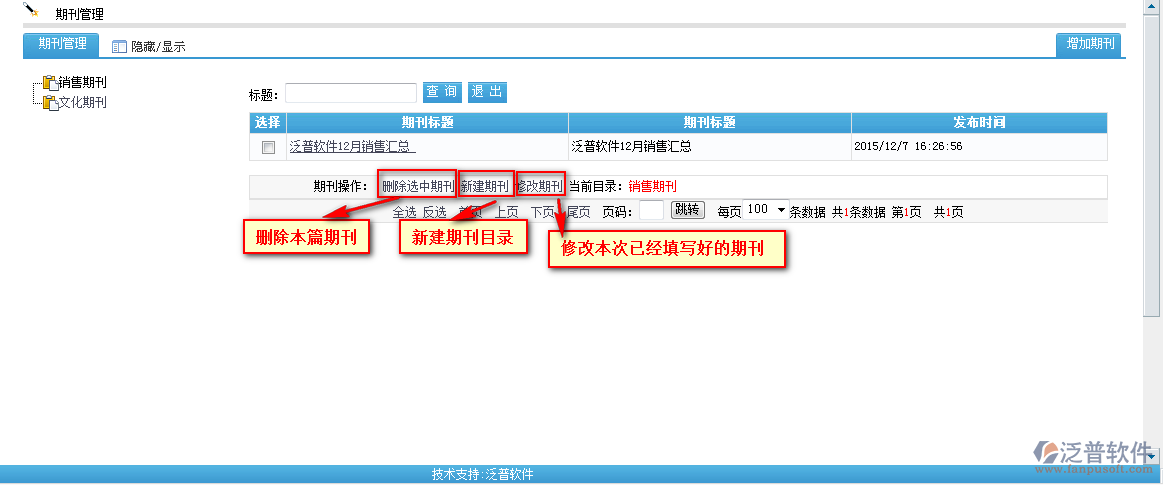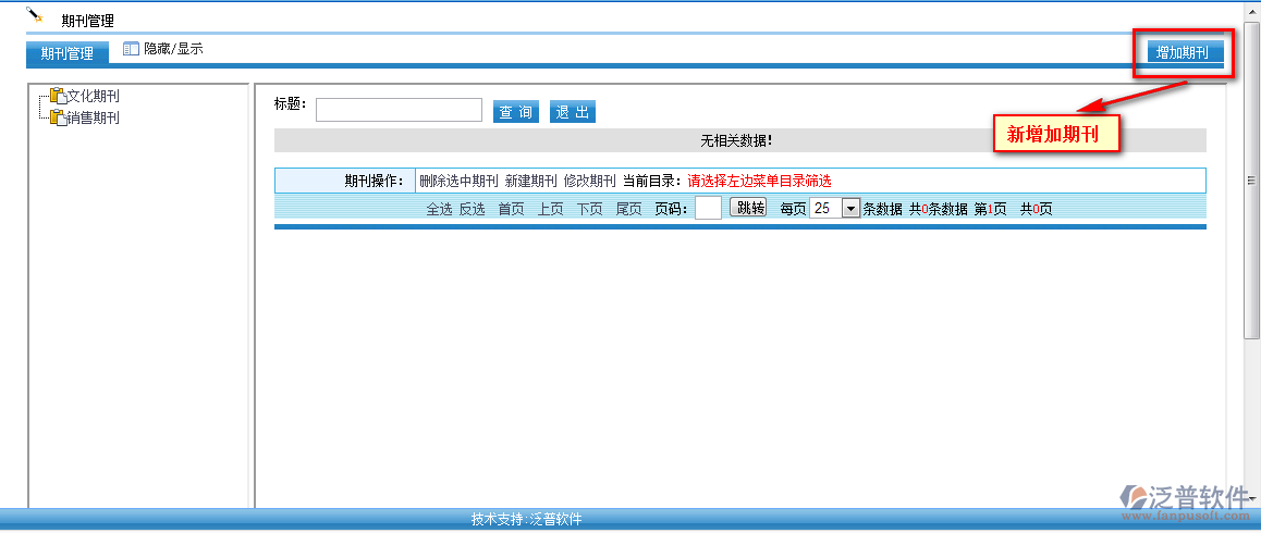 添加對應(yīng)文章主要在期刊管理中操作,期刊管理可以【新建、刪除、修改期刊】。