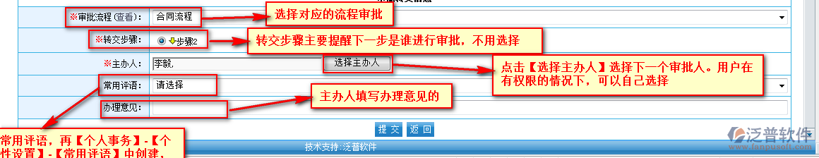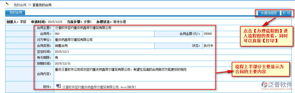 點(diǎn)擊【合同主題】進(jìn)入流程審批界面。信息填寫完成后,點(diǎn)擊【提交】即可完成審批操作