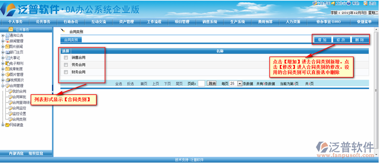 OA系統(tǒng)中合同類別主要是先對合同有一個分類的處理,用戶可根據(jù)自己的需要進(jìn)行自定義合同的分類