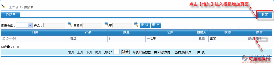 首先進(jìn)入到【生產(chǎn)系統(tǒng)】—【庫存管理】—【報(bào)損單】,如圖: