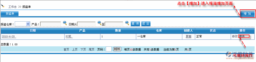 首先進(jìn)入到【生產(chǎn)系統(tǒng)】—【庫存管理】—【報(bào)溢單】,如圖: