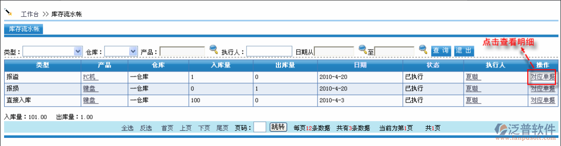 首先進(jìn)入到【生產(chǎn)系統(tǒng)】—【庫存管理】—【庫存流水賬】,如圖: