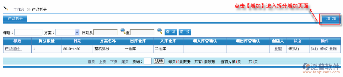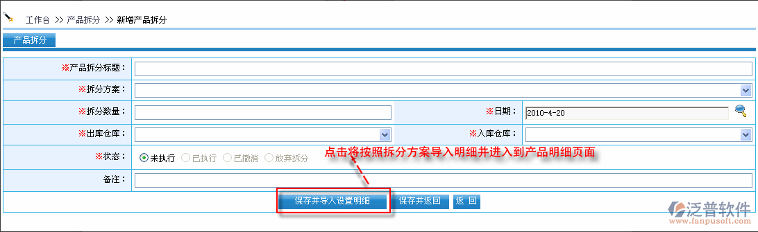 新增完明細(xì)以后,點(diǎn)擊【設(shè)置完成并返回】返回拆分列表,然后點(diǎn)擊此行數(shù)據(jù)后的【執(zhí)行】進(jìn)入拆分確定頁面