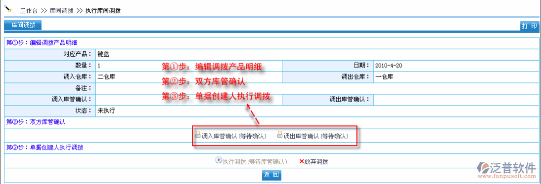 點(diǎn)擊【執(zhí)行】進(jìn)入調(diào)撥執(zhí)行頁面,如圖: