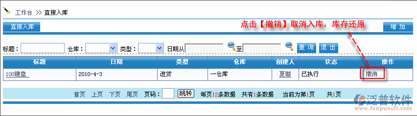 首先進入到【生產(chǎn)系統(tǒng)】—【庫存管理】—【入庫單】—【直接入庫】,如圖: