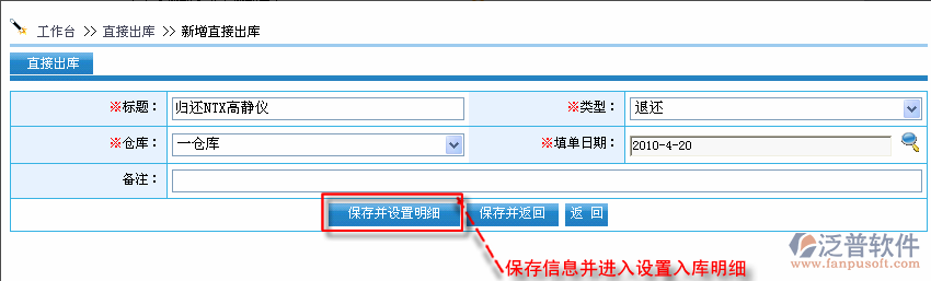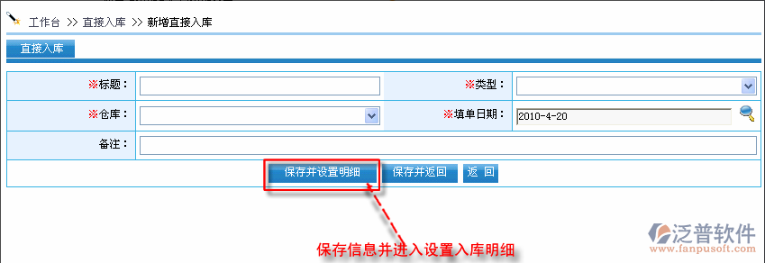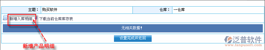 點擊【保存并設(shè)置明細】保存信息并進入設(shè)置入庫明細,如圖: