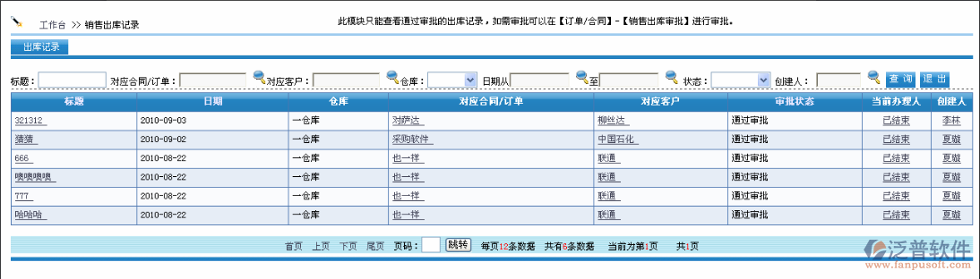 首先進入到【生產(chǎn)系統(tǒng)】—【庫存管理】—【出庫單】—【銷售出庫記錄】,如圖:
