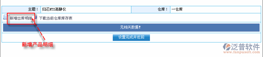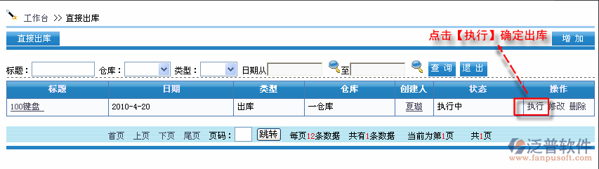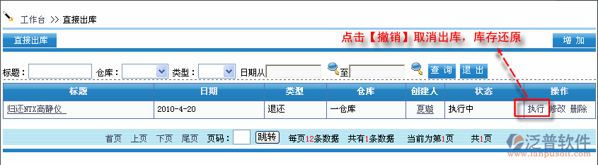 新增完明細以后,點擊【設(shè)置完成并返回】返回出庫列表,然后點擊此行數(shù)據(jù)后的【執(zhí)行】則出庫完成,如圖: