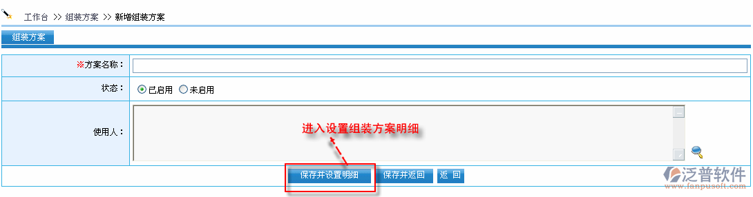 點(diǎn)擊【保存并導(dǎo)入設(shè)置明細(xì)】將設(shè)置組裝方案明細(xì),如圖: