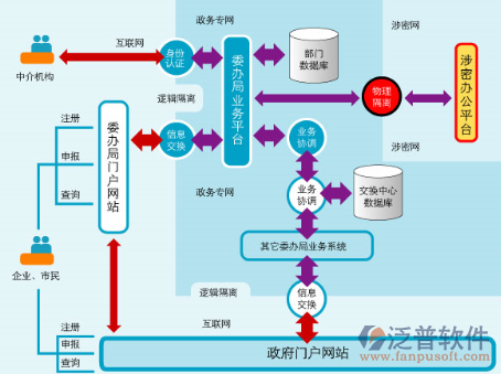申報者:1. 咨詢服務的需求:通過外網(wǎng)實現(xiàn)網(wǎng)上咨詢,以及短信查詢等多渠道的咨詢服務方式;2. 申報方便的需求:通過外網(wǎng)預申報,簡化申報者的項目審批申報流程,提供了方便的申報手段;3. 辦理快捷的需求:提供多部門的串、并聯(lián)審批;4. 查詢方便的需求:采用基于網(wǎng)站、短信手段,對審批結(jié)果、狀態(tài)進行查詢。