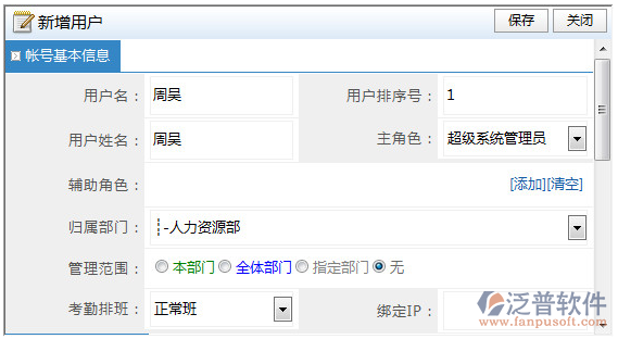 如在系統(tǒng)中新建一個用戶名為“周吳”的用戶。點擊保存新增成功。