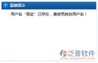 現(xiàn)在新增一個用戶名為“周武”的用戶,在點擊保存的時候有下面提示。