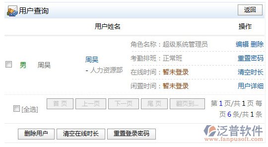 在人員查詢中輸入“周武”查詢