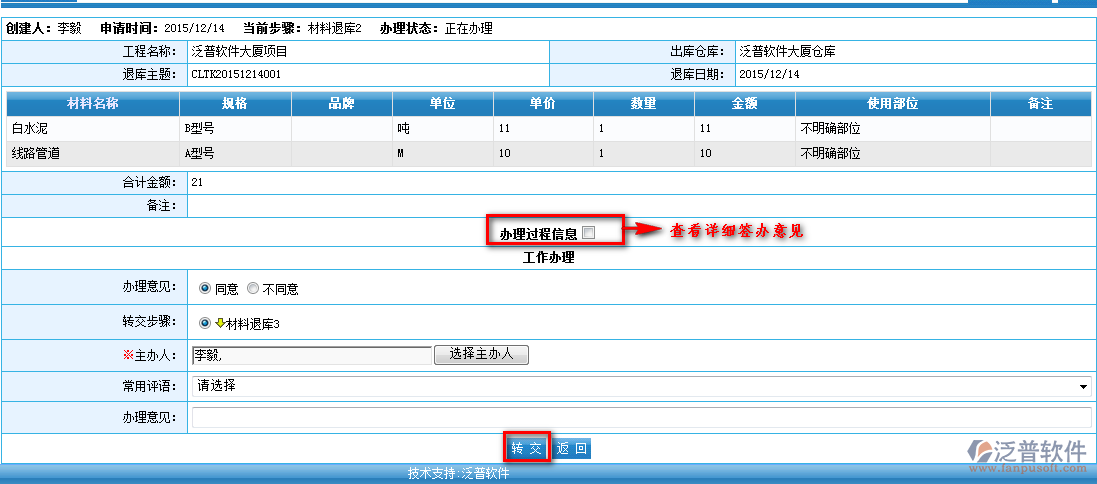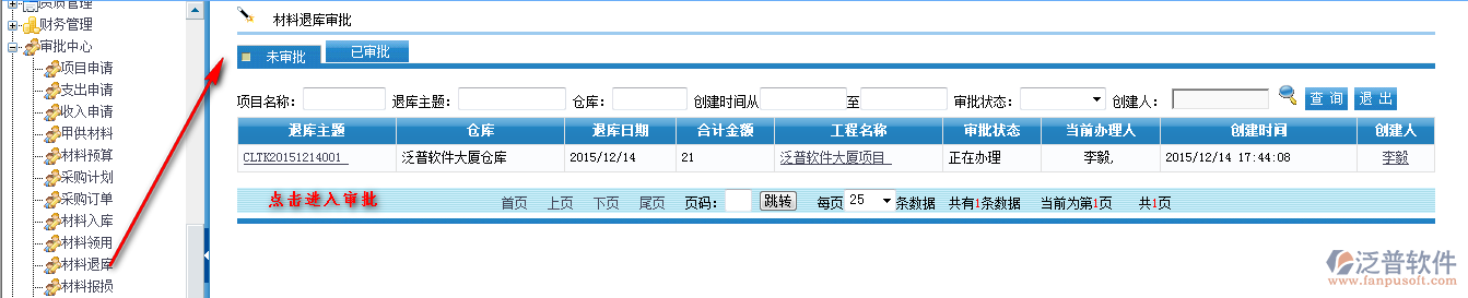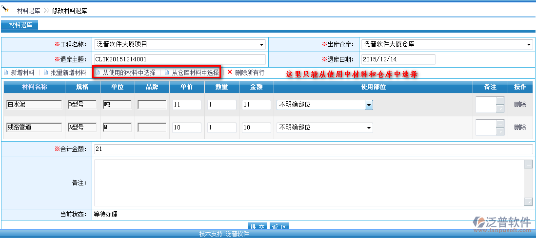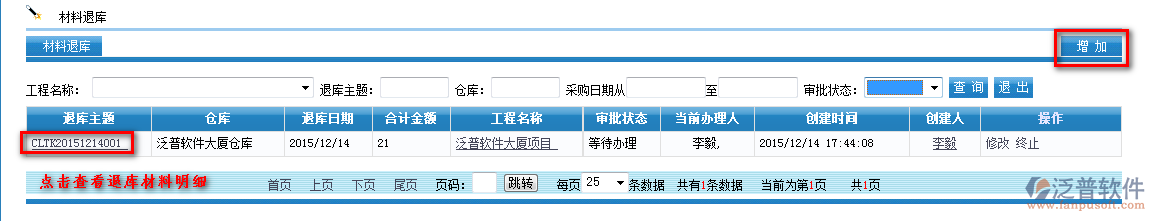 首先進入【項目管理】—【材料管理】—【材料退庫】
