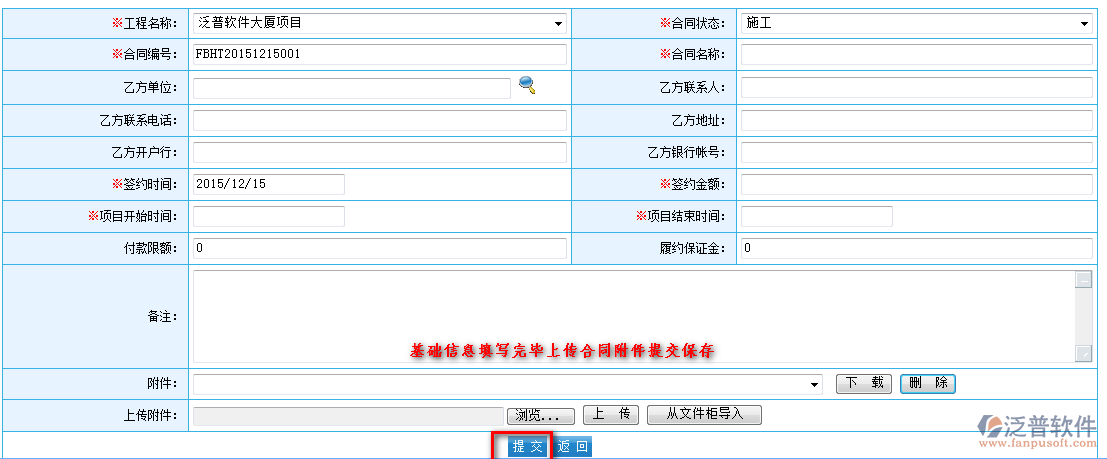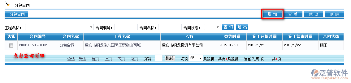 進(jìn)入【項目管理】—【分包管理】—【分包合同】