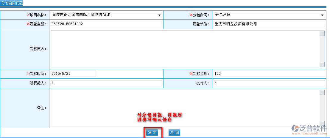 | 分包單位罰款分類設(shè)置 | |