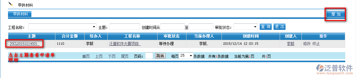 如何進(jìn)行甲供材料申請(qǐng),首先進(jìn)入【項(xiàng)目管理】—【材料管理】—【甲供材料】