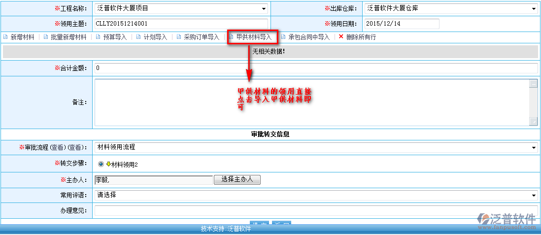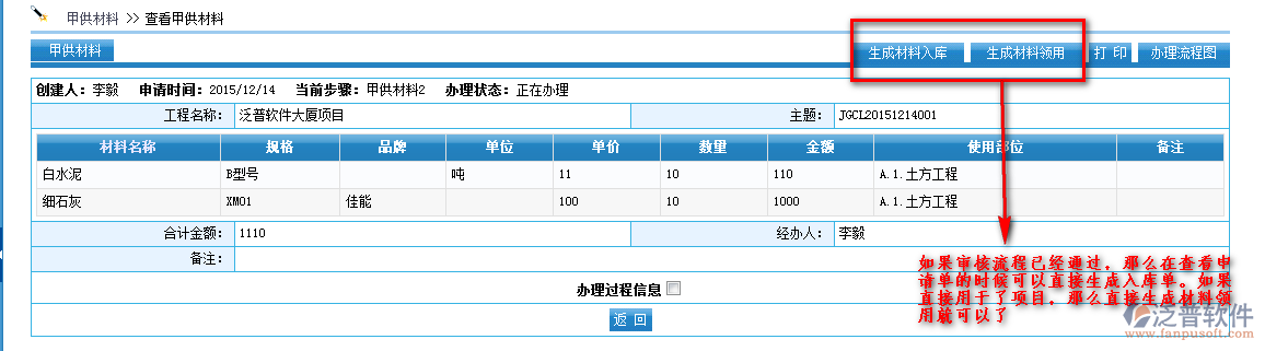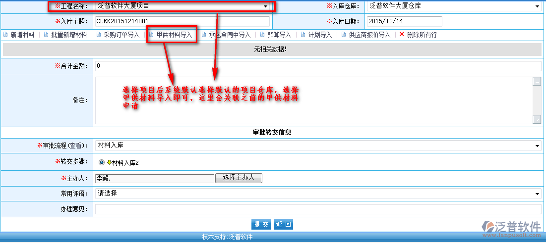 甲供材料審批通過(guò)拉到現(xiàn)場(chǎng)后辦理直接辦理入庫(kù)操作