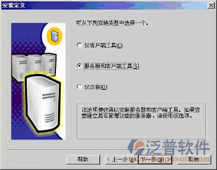 在 【安裝定義】窗口,選擇 【服務器和客戶端工具】選項進行安裝。我們需要將服務器和客戶端同時安裝,這樣在同一臺機器上,我們可以完成相關的所有操作。如果你已經(jīng)在其它機器上安裝了SQL Server,則可以只安裝客戶端工具,用于對其它機器上SQL Server的存取。如圖: