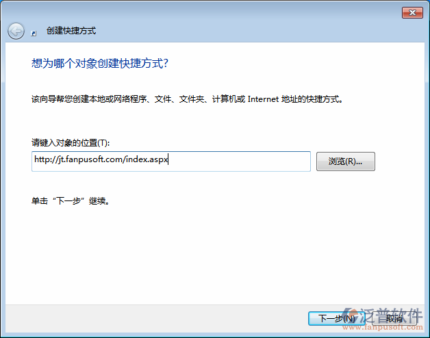 2、在快捷方式創(chuàng)建窗口內(nèi)填寫正確的OA訪問地址,填寫完成后點(diǎn)擊“下一步”按鈕。