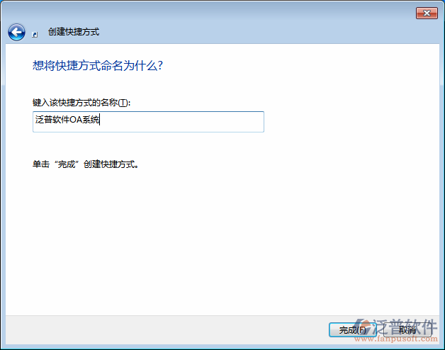 3、在創(chuàng)建快捷方式一頁面填寫快捷方式名稱,填寫完成后點(diǎn)擊“完成”按鈕。