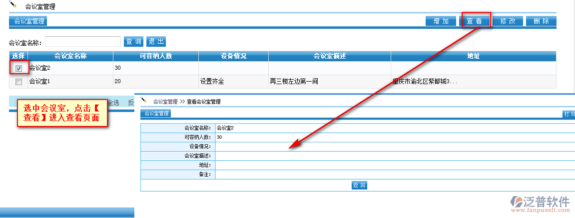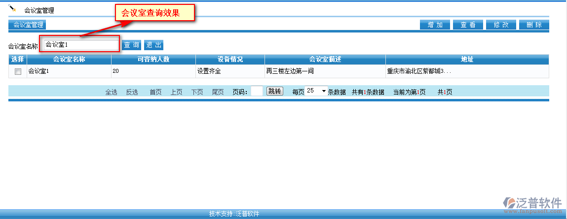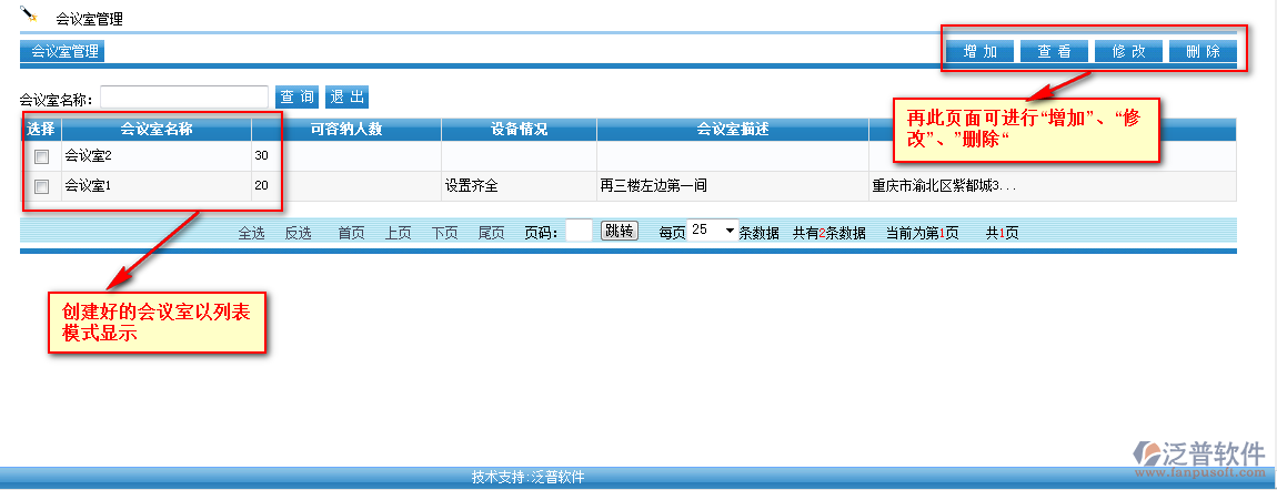 創(chuàng)建完后的會議室主要以列表的模式顯示,可通過會議室名稱進(jìn)行模糊查詢