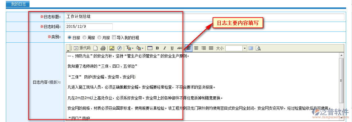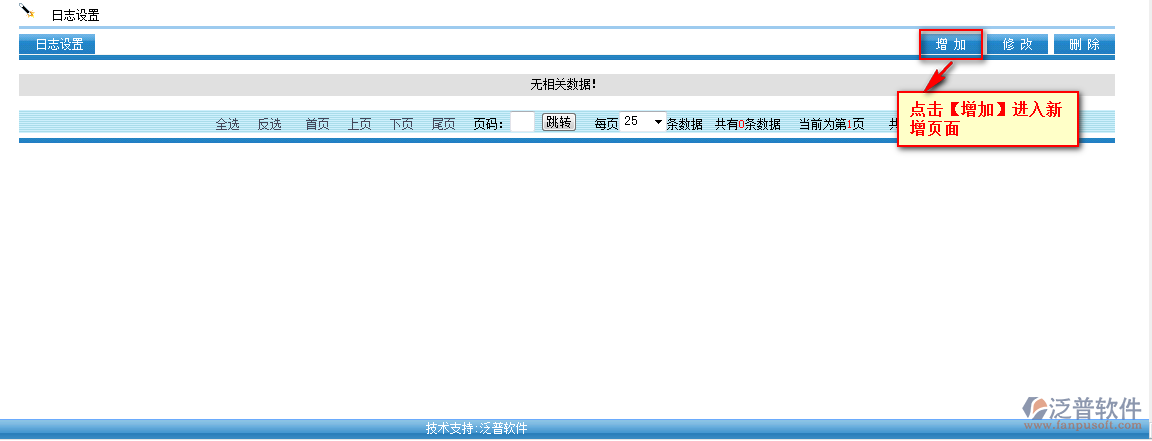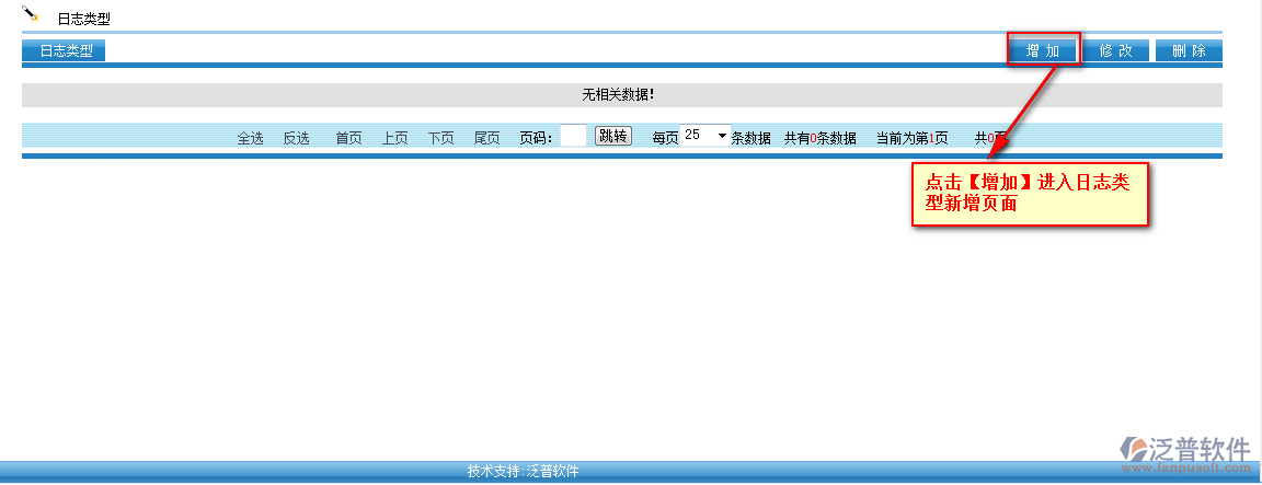 點擊【增加】進入到日志新增頁面。類別在【日志類型】中設置