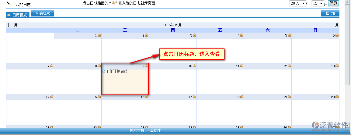 員工每天的工作情況以及工作安排,都可以填寫在【我的日志】中。首先進入到【行政辦公】—【工作日志】—【我的日志】,如圖: